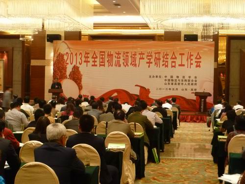 由中国物流学会、中国物流与采购联合会主办的“2013年物流领域产学研结合工作会”于2013年5月10—11日在山东省高密市召开。中国物流学会常务副会长戴定一,国家发改委经济贸易司副司长耿书海,高密市委副书记、市长杨建华等领导出席。中国物流与采购联合会副会长、中国物流学会副会长贺登才主持了会议。中国物流学会兼职副会长姜超峰、汪鸣、王佐、冯耕中、魏际刚、恽绵,部分地方政府物流工作牵头部门、物流行业协会(学会)、中国物流学会产学研基地、物流企业(园区)、有关院校、研究机构、特约研究员代表等300余人参加了会议。