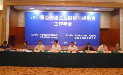 “2013年物流企业财税和投融资工作年会”于6月21—22日在安徽省芜湖市召开。芜湖市市委书记高登榜会见部分参会代表,人民政府市长潘朝晖到会致辞,商务部流通业发展司王选庆副司长、国家发改委经济贸易司、财政部税政司、国家税务总局等有关部委分管同志到会讲话并听取企业意见。来自24家重点物流企业的财税工作高管出席了会议,中国物流与采购联合会副会长贺登才主持了会议。
