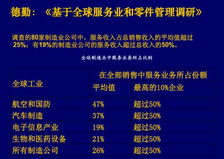 德勤数据清楚告诉我们,今天全球每个行业里面排在里面的大企业,生产性服务业收入超过一半。目前,我国企业具备服务型制造能力的企业仅占所有企业2.2%,和发达国家的差距还很遥远。亚马逊的物流中心,已经全面实现了机器人代替员工,三千套的机器人,而员工只有150人。