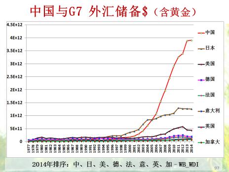 中国外汇储备包含黄金,这个不能和美国比,因为美元不是存的外汇,除了美国以外。第二个是日本,这个外汇储备是增强了人民币抵挡风险的能力。