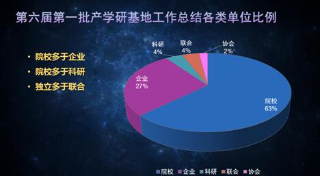 再来看看产学研基地的论文,论文一共是99篇,其中院校占63%,企业占27%,科研、联合、协会占剩余的。院校多于企业,院校多于科研,院校多于联合。