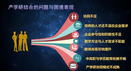 “互联网+”最核心是加什么?加的是“实业”。但是很遗憾,目前我们产学研有些虚重实轻。企业是真正地扎进实业中去了,但从产学研基地总结报告来看,院校和科研机构还没有全力以赴地冲到实业中去。这就给我们带来了一些困境,产学研协同不够,培养的人才还不适应企业需求,企业的积极性不足等等。