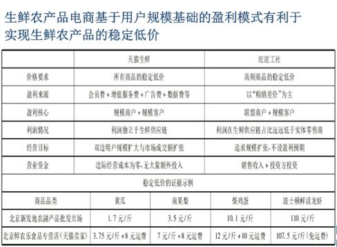 (2)天猫生鲜集聚大量生鲜供应商有利于形成完全竞争的市场结构从而向消费者提供竞争性销售价格;沱沱工社与更多上游供应商结成长期战略合作关系有利于获得竞争性供应价格;