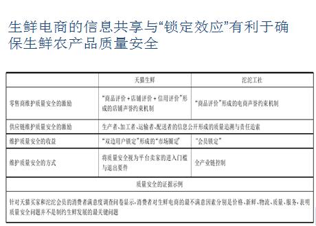 生鲜电商的信息共享与“锁定效应”有利于确保生鲜农产品质量安全,这是因为: