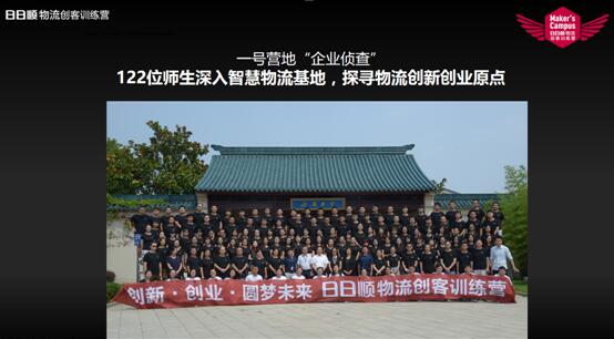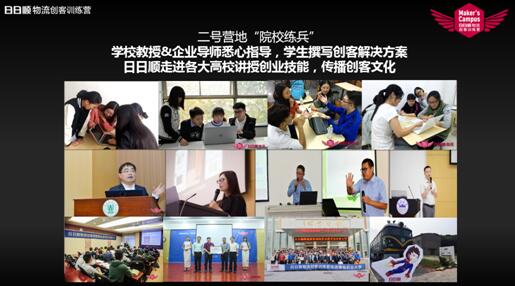 二号营地是院校练兵,学生了解用户痛点后回到学校,在老师的指导下,对他们的解决方案进行提炼和撰写。日日顺物流也走进各大高校讲授创业技能,传播创客文化。