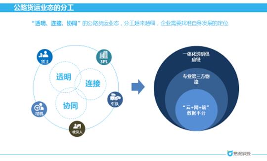 “透明、连接、协同”的公路货运业态,分工越来越细,企业需要找准自身发展的定位,而易流科技的定位就是“云+网+端”的数据平台。