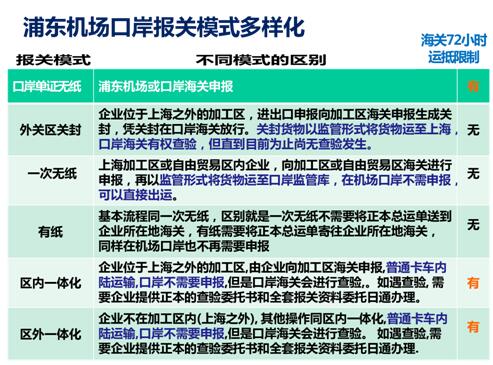 一体化通关的实施,同转关模式使用监管车辆并需要办理清关和两次转关手续相比,可以使用普通卡车用运输,减少了一次转关操作且费用降低。但缺点是一旦发生查验,必须在申报地机场进行,速度慢且海关之间沟通渠道不畅。