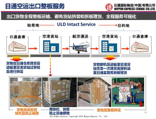 日通提供物流服务中,一大特色是全程使用整板,有助于全程操作時时间缩短,避免货站拼装和理货,最大限度减少货物破损、丢失。