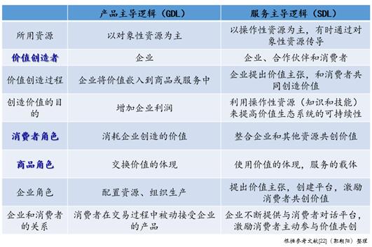 服务主导逻辑认为所有经济都是服务经济,企业不能传递价值,只能提出价值主张;交换的是服务,商品只是载体;价值创造转变为全员参与(A2A)。