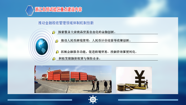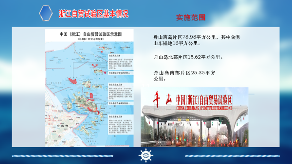 浙江省委省政府决定把自贸区所有片区全部放在舟山,这是省委省政府对舟山的高度肯定。舟山地理位置比较特殊,群岛地形,岛屿共计1390座。自贸区分为北部的离岛片区、本岛北部片区和本岛南部片区,重点任务是探索以油品为核心的大宗商品的投资便利化和贸易自由化。以下介绍自贸区着重突破五个重要内容。