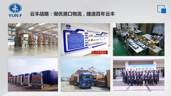 云丰国际物流(上海)有限公司是专业从事现代化第三方综合物流企业,公司现有员工700余名,下辖十余个部门,公司现有库仓面积18万平方米,其中仓储面积9万平方米,外场地总面积9万平方米。运输车辆160余台,其中LNG天然气车辆60余台。专业运作各种货物装卸、运输、进出口项目,可为客户提供多元化物流解决方案及高端货物跟踪服务。近年来,公司大力开发增值型服务,组建了专业的挂衣业务操作团队,可针对客户需求提供专业的改挂方案。云丰国际的定位、规模、战略以及责任,分别是“港口物流供应商”、“久而弥坚,志在千里”、“做优港口物流,建造百年云丰”、“感恩社会,思谋回馈”。