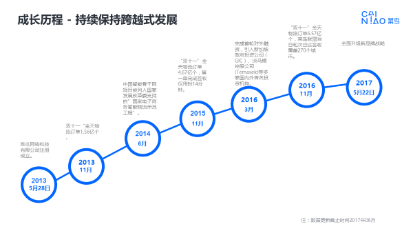 菜鸟网络的愿景是为消费者提供极致的物流体验;高效的智慧供应链服务;技术创新驱动的数字化平台。