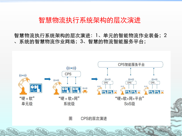 目前中国及全球关于CPS的研究进展为智慧物流理论突破打下基础。以信息物理系统(CPS)为理论为指导,以大数据、云计算与物联网集成应用为智慧系统发展方向,以雾计算、边缘计算、智能设备终端等技术融合为智慧执行系统来推动应用落地,以单元级智慧物流终端、系统级智慧物流网络,平台级智慧物流生态为逐级演进方向,全面建立智慧物流理论体系和系统架构,可以取得智慧物流应用研究的突破。