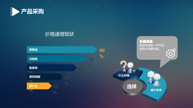 产品采购,可能通过供应链不同环节价格递增情况,判断在哪一环节采购更加优惠。