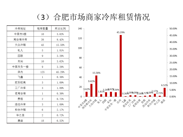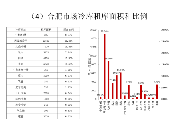 调研地点和典型冷库:百大周谷堆物流园、中菜市、毛竹园、百大周谷堆冷库、合肥康益食品有限责任公司、旺美冷库、和合冷链(华冷)、大众冷链、四联冷链、浩远冷库……