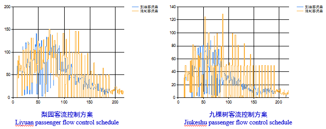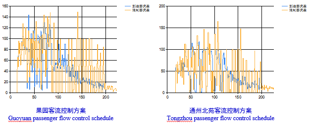 然后通过北京八通线的实例验证证明了模型的可行性。最终指出协同客流控制能够提高精准控制进入站台的客流,避免站台客流滞留;而以安全为导向的客流控制,能够保证乘客等待时间增长在较小范围内,最大程度提高客流聚集的安全性。其控制客流方案如下: