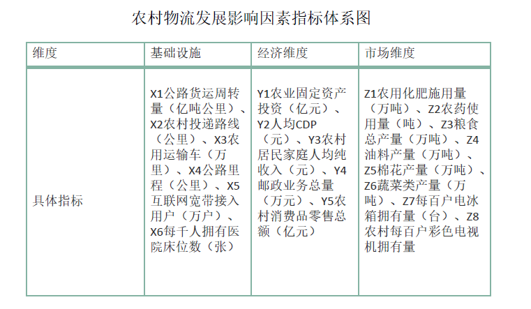 结果表明:所构建的3方面指标中经济指标对农村物流的影响最为明显,其中人均地区生产总值以及农村固定资产投资与农村物流的关联度最强。基础设施指标中公路里程、农村快递投递路线对农村物流的影响尤为显著。市场指标中各项关联度趋于一致,但每百户电冰箱拥有量、蔬菜产量与农村物流的关联度最大。
