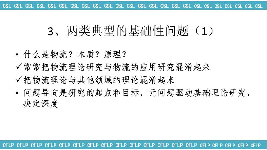 一个就是问题导向,我们很难提出好问题。前些时候我参加一个会议,主题是回归物流,回归物流是怎么来的呢?就是因为物流发展迷失了方向,不知道什么是物流,物流金融是物流吗?物流地产是物流吗?物流的区块链是物流吗?哪些是物流低层的基础,哪些是物流应用的形式,哪些是物流跟其他领域的理论相结合的产物,跨学科的产物,我们能分得出来吗?