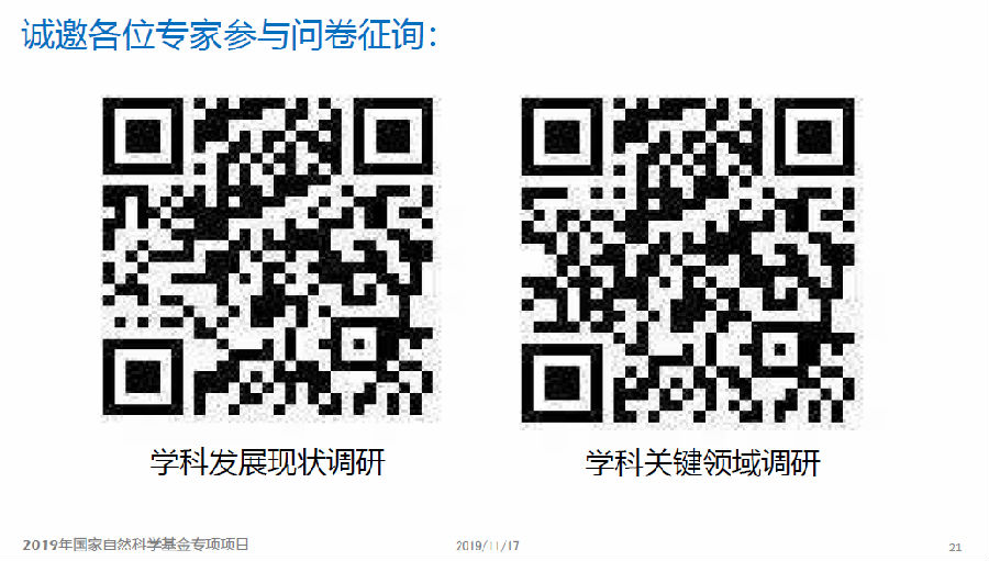 从国家需求、交叉发展、前沿、原创等多角度探究学科各领域研究的关键科学问题,分析学科未来发展的“四梁八柱”,优化学科总体布局和优先资助领域。通过扫描二维码可以填写问卷,选择你认为值得资助的重要领域,被选数量排名靠前的研究领域将纳入优先资助的范畴。目前已经收到372个同行学者填报的问卷,统计结果可以看出各子学科分布等信息。希望大家积极参与问卷调查,为学科发展贡献力量,谢谢大家!
