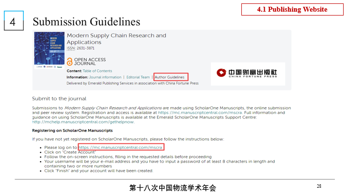 在这样的背景下,国际采购与供应链管理联盟、中国物流与采购联合会、中国财富出版社出版社、中国科学大学和Emerald共同建立了英文期刊“Modern Supply Chain Research and Applications”,翻译成中文为《现代供应链研究与应用》,是IFPSM的第一本官方旗舰期刊。