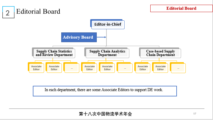 期刊的组织架构如图所示,主编下面分为三个领域,每个领域约有10位副主编协助投稿和送审。期刊设有顾问委员会,委员会主席是国际采购与供应链管理联盟主席、中国物流与采购联合会会长何黎明。期刊主编是中国科学技术大学管理学院执行院长、教授余玉刚,余教授在2012年获得了国家自然科学基金优秀青年学者,青年千人计划,2015年被聘为教育部长江学者特聘教授。余教授在很多国际知名期刊发表了60多篇文章,2014-2018年被Elsevier评为大陆最高被引学者。同时他也在包括AOR、TRE在内的很多主流期刊上担任客座编委,曾获得教育部自然科学一等奖。