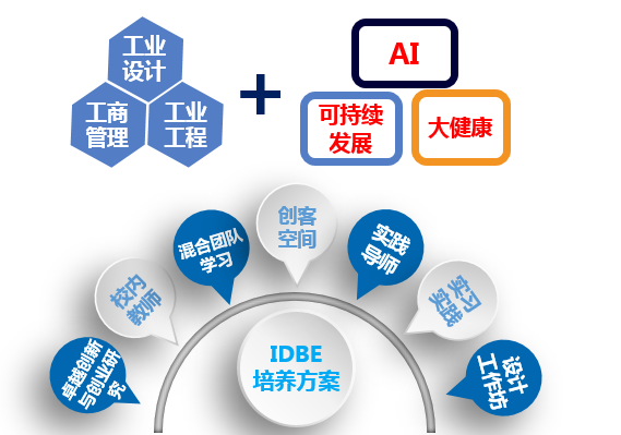 我们把工业设计、工商管理、工业工程结合起来,把人工智能、大健康、可持续发展结合起来,构造交叉的学科平台。IDBE培养方案是我们做的非常有特色的项目,用不同的导师来培养学生,用创客空间、混合团队和创业研究案例的方式培养。