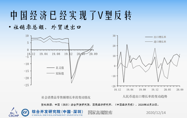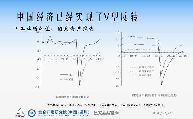 工业增加值、固定资产投资,尤其是工业增加值已经经过了非常深的“V”型触底,迅速地恢复到疫情之前的水平,实现了“深蹲”和“反弹”。