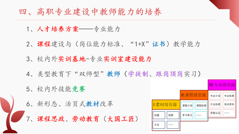 要解决以上问题,提高高职院校专业建设质量与培养教师能力,可以从以下方面着手:一是产教融合-校企合作-协同育人(职教20条);二是“三教”改革;三是技能竞赛;四是现代学徒制(双元制);五是思想品德、劳动教育(德智体美劳)。
