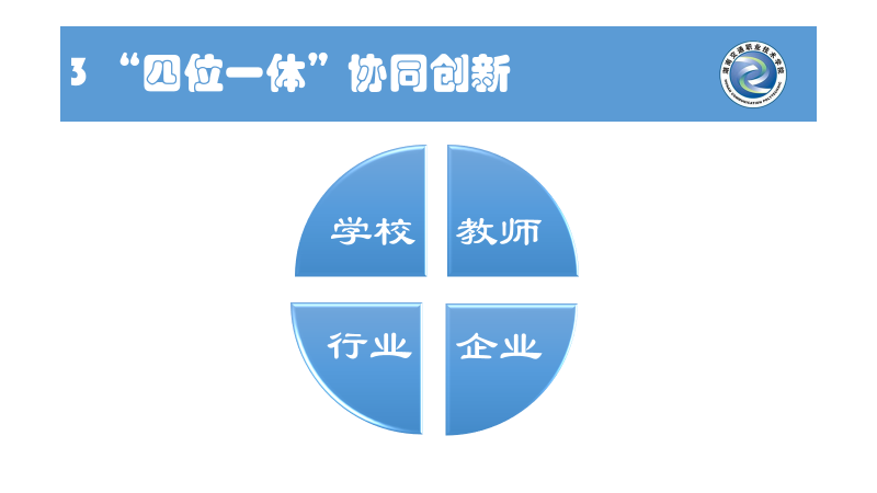 以“四位一体”协同创新来进行物流专业教学团队建设,“学校、行业、企业和教师”4个方面打造团队,近几年教学团队成员公开发表论文30余篇,CSCD、北大核心以上10余篇,出版专著2本,编写教材8本,其中2本教材入选教育部“十三五”职业教育国家规划教材,团队中有3名教师被行业企业聘请为兼职顾问。