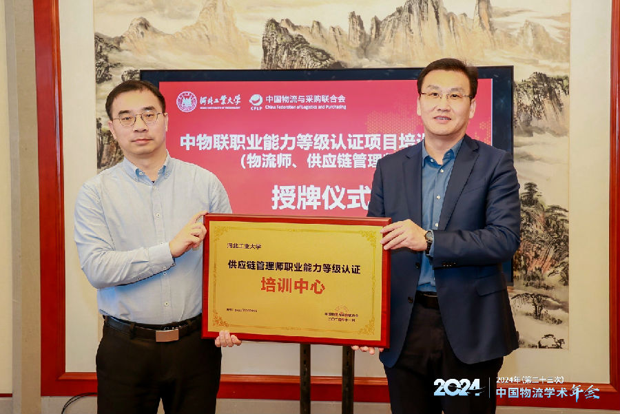 论坛期间,举行了中物联职业等级认证培训中心授牌仪式,中国物流与采购联合会教育培训部主任、物流行指委副秘书长李俊峰,河北工业大学廊坊分校党委副书记、副校长盖世洲出席。