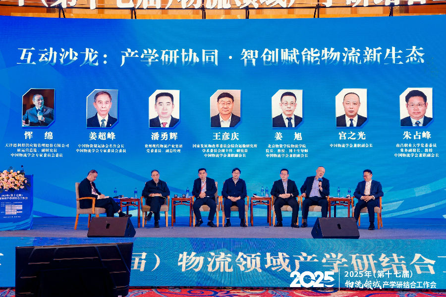 天津德利得供应链管理股份有限公司原运营总监、副研究员,中国物流学会专家委员会委员恽绵主持了互动沙龙环节。中国物资储运协会名誉会长、中国物流学会专家委员会委员姜超峰,贵州现代物流产业集团副总经理潘勇辉,国家发展和改革委员会综合运输研究所学术委员会副主任、研究员、中国物流学会兼职副会长王彦庆,北京物资学院物流学院院长、教授、博士生导师、中国物流学会兼职副会长姜旭,中国物流学会兼职副会长宫之光,南昌职业大学党委委员、常务副校长、教授、中国物流学会兼职副会长朱占峰围绕“产学研协同·智创赋能物流新生态”进行了交流与探讨。