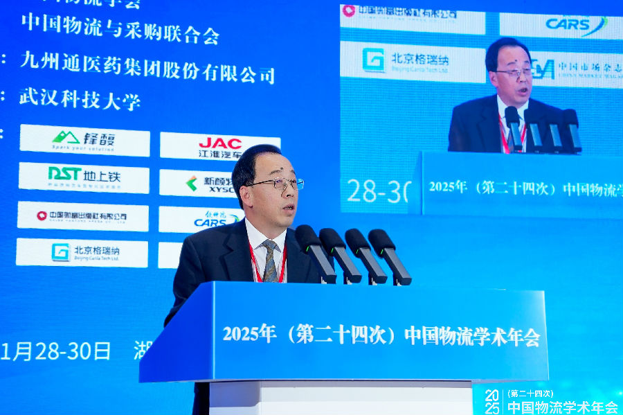 2025年11月29-30日,由中国物流学会、中国物流与采购联合会主办的2025年(第二十四次)中国物流学术年会在武汉召开。中国物流与采购联合会党委书记、会长蔡进,九州通医药集团股份有限公司创始人、副董事长刘兆年,武汉科技大学党委常委、副校长马腾出席并致辞。中国物流学会会长、全国物流职业教育教学指导委员会主任任豪祥出席并作中国物流学会七届五次理事会工作报告。中国物流与采购联合会副会长、中国物流学会副会长杨国栋,中国物流与采购联合会总经济师、中国物流学会副会长崔忠付,中国物流学会副会长兼秘书长、教育部高等学校物流管理与工程类专业教学指导委员会秘书长郭肇明分别主持开幕式和全体大会。来自30个省区市物流领域政产学研各界领导、专家、学者、企业家及院校、研究机构代表1500余人参加会议。