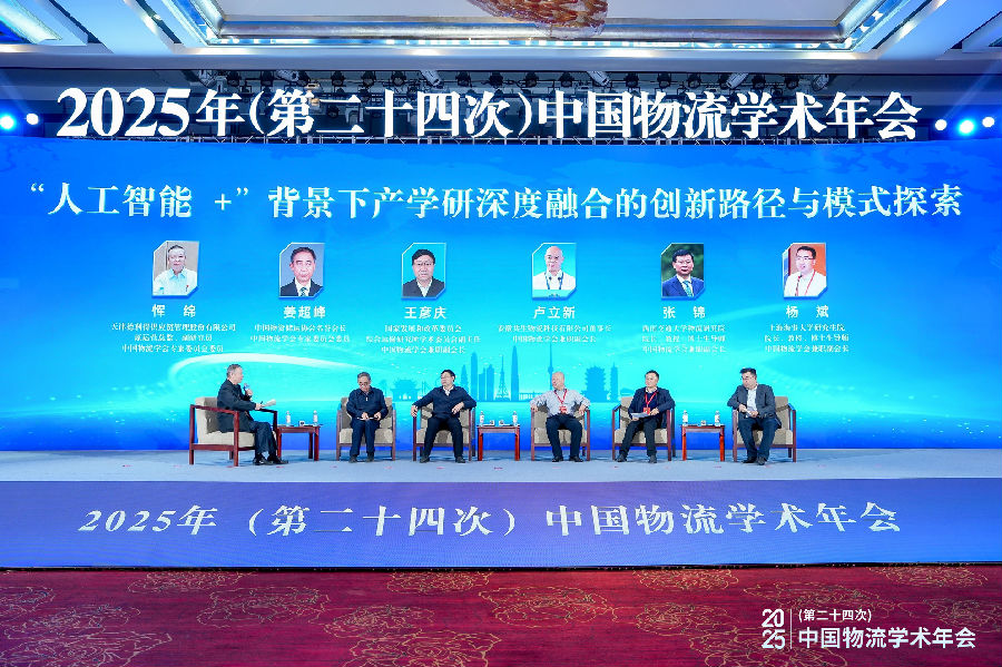 天津德利得供应链管理股份有限公司原运营总监、副研究员、中国物流学会专家委员会委员恽绵主持互动沙龙环节,中国物资储运协会名誉会长、中国物流学会专家委员会委员姜超峰,国家发展和改革委员会综合运输研究所学术委员会副主任、中国物流学会兼职副会长王彦庆,安徽共生物流科技有限公司董事长、中国物流学会兼职副会长卢立新,西南交通大学物流研究院院长、教授、博士生导师、中国物流学会兼职副会长张锦,上海海事大学研究生院院长、教授、博士生导师、中国物流学会兼职副会长杨斌围绕《“人工智能+”背景下产学研深度融合的创新路径与模式探索》进行了交流与探讨。