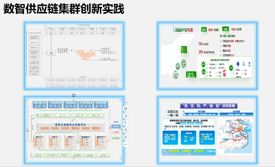 概括而言,在产业链数智化供应链乃至数智化供应链集群的发展过程中,核心在于以下四点:首先,通过数据流重构商流、物流、资金流、信息流,打通产业堵点。数智集群需依托统一的数据空间,整合政府、产业等各方数据,实现“四流合一”,消除供应链中的“牛鞭效应”,这一点在前面提到的十几个集群中已得到验证。其次,以平台化手段降低中小企业数字化门槛。若不能实现数智普惠和技术普惠,数字化将始终难以普及,特别是对于大量中小微企业而言。通过供应链即服务,提供订舱、融资、关务、保险等模块化服务,实现“轻资产接入、重价值获取”,方能有效解决问题。第三,通过制度桥接激活政策与市场双重动能。地方政府可通过国企平台搭建制度接口(如电子债权确权、数据确权规则),将公共信用转化为市场信用,实现“政策红利”向“制度资产”再向“产业资本”的转化链条。若这一通路不畅,企业再努力也难见成效。最后,以区域协同推动产业链跨域融合。打破行政区域界限,构建以核心枢纽加腹地产业的跨区域产业共同体。只有这四点全面落实,现代化产业体系才有望实现。
