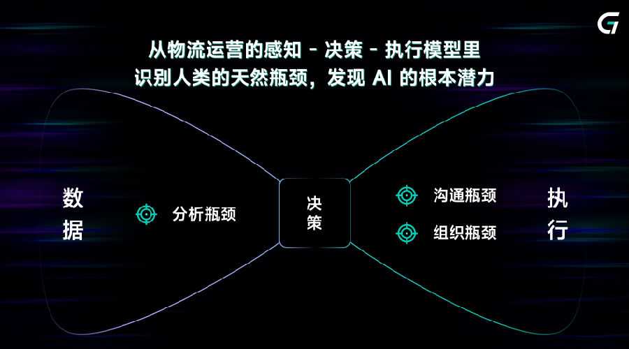 “传统数字化缺泛化能力,无法实现数据推理、沟通、计算的协同。”翟学魂指出,AI技术的出现,正是突破这一瓶颈的关键——而物流行业“感知端数据海量分散、执行端作业多节点长链路”的特性,催生了“物流蝴蝶结模型”。